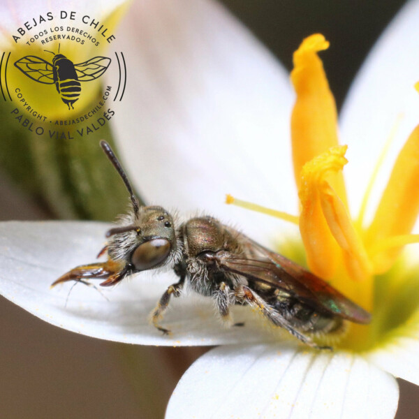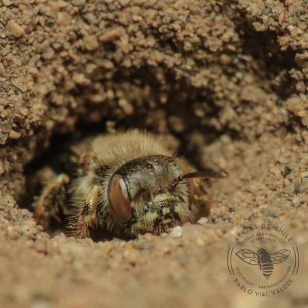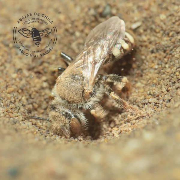 Abeja nativa de Chile. Abeja de tamaño mediano 10 mm. Su abundante pilosidad les permite posarse en superficies rocosas o arenosas con altísimas temperaturas; cuando el suelo «hierve», aislándola sin problemas. Cavan, frenéticamente, y son capaces de encontrar su nido en suelos muy arenosos.
