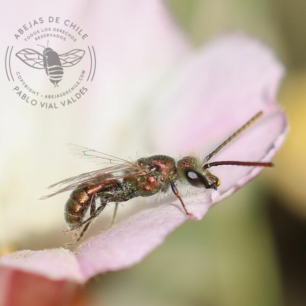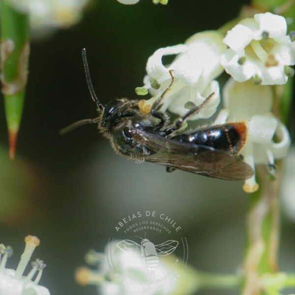 Abeja cleptoparásita. Habita desde la Región de Antofagasta hasta la Región Metropolitana (no publicado).